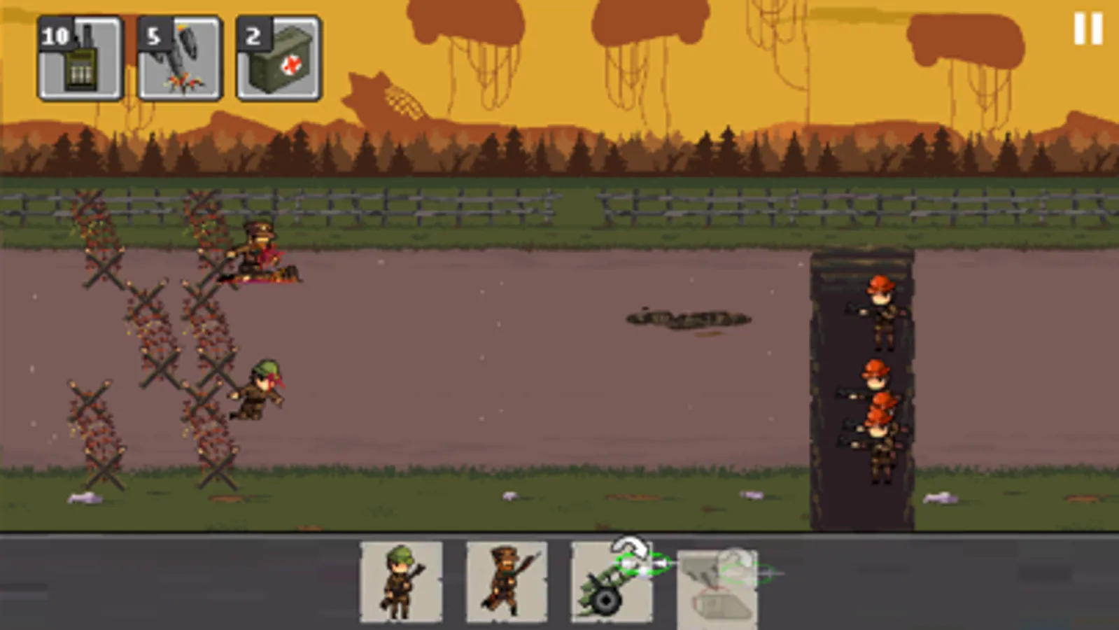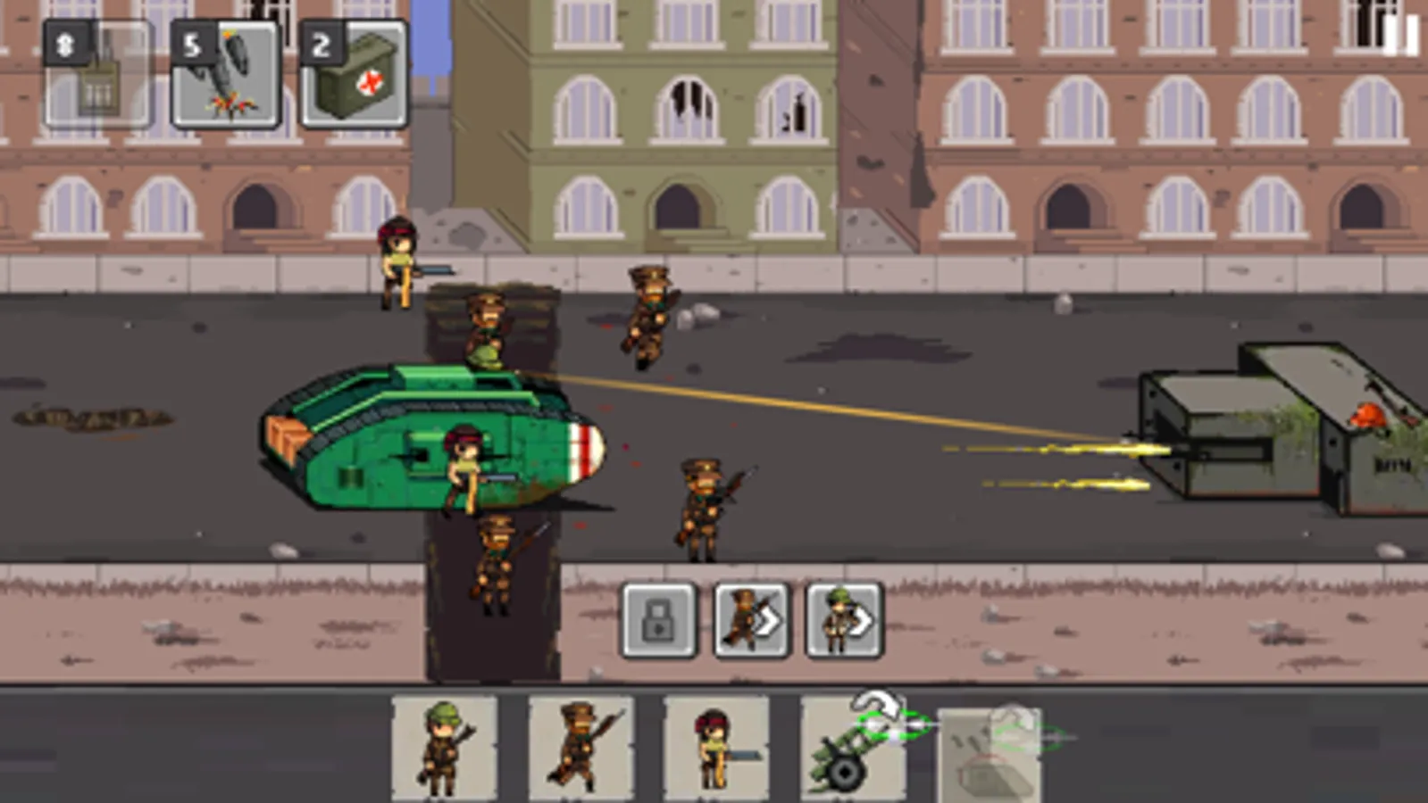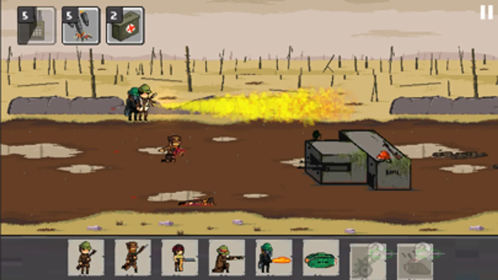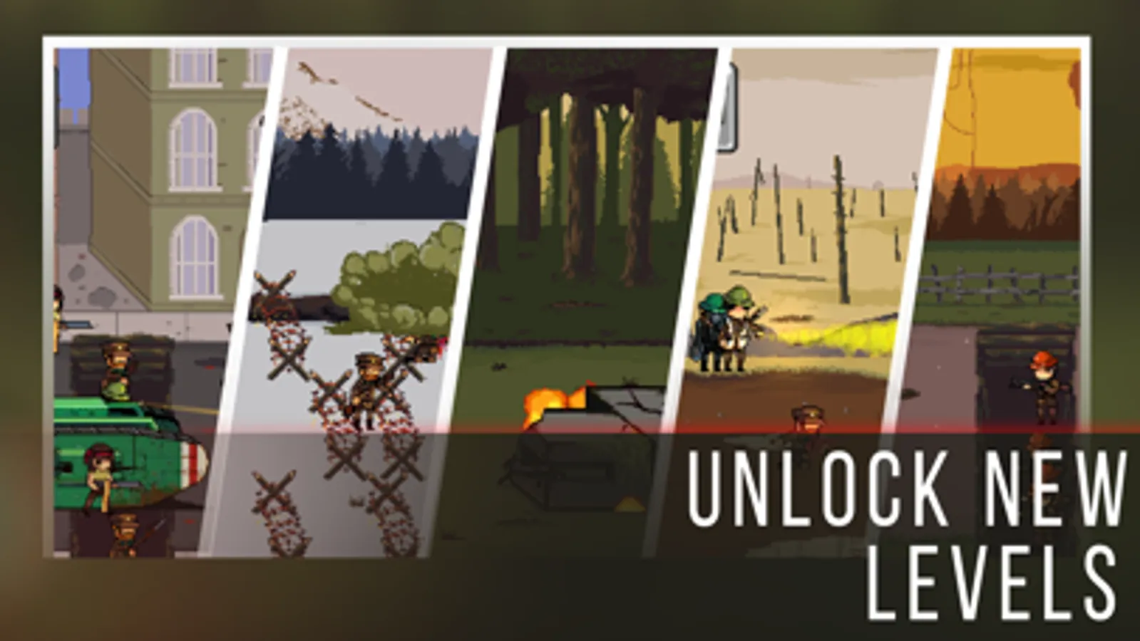 This 1917 trench assault warfare offers you epic defense gameplay with awesome pixel game graphics and sound effects, giving you an immersive experience of real world war trenches of British, German, and French Regimes.