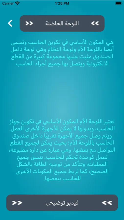 تطبيق يساعد الطالب على فهم مكونات الحاسوب المادية بصورة جميلة، ويمكنه من التعرف على كل مكون من مكونات الحاسوب المادية،