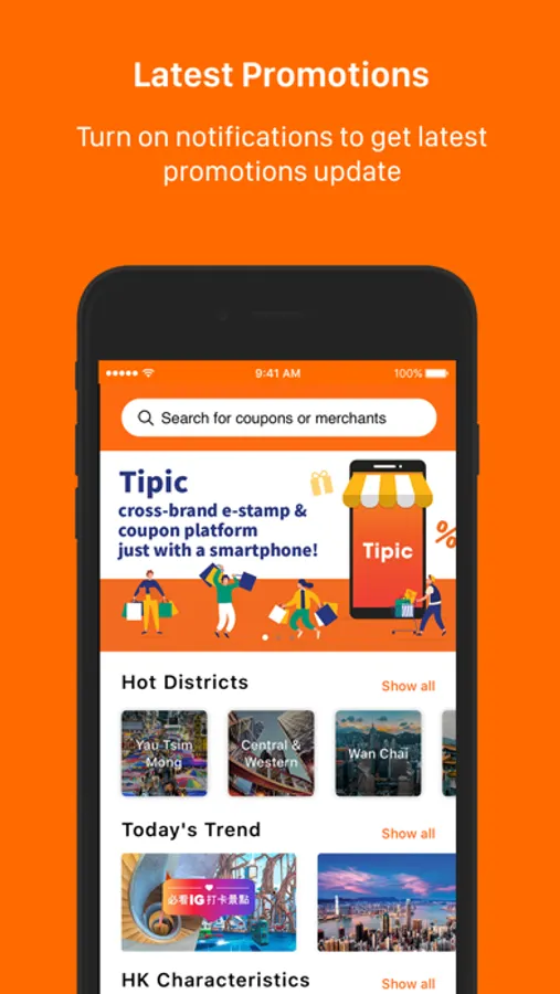 The brand new "Tipic" mobile app brings you a new cross-merchant consumer experience! Users can register for free to enjoy the discount and stamping of the whole city: