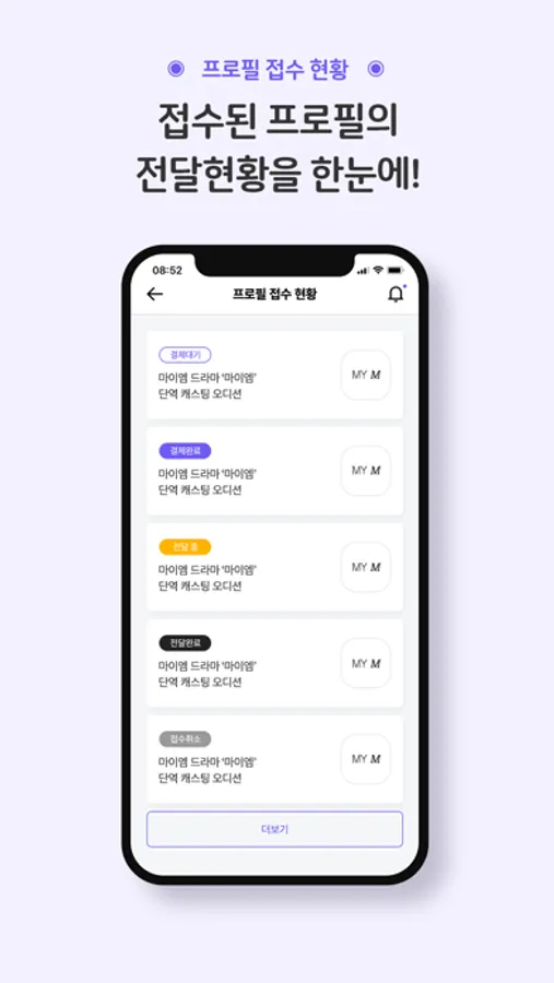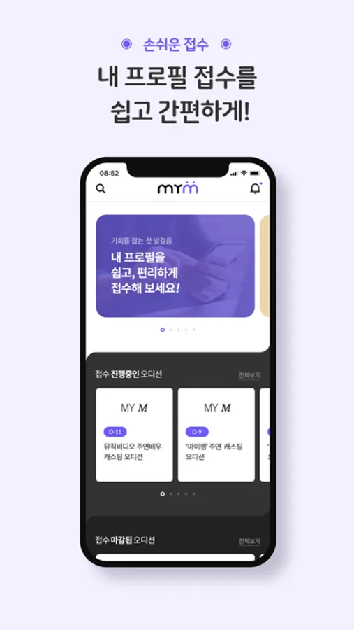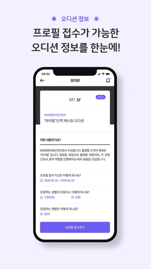 mym앱은 원하는 오디션에 나의 프로필을 쉽고 간편하게 직접 전달해드리는