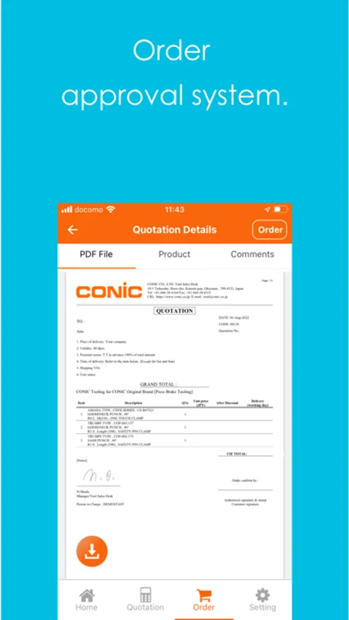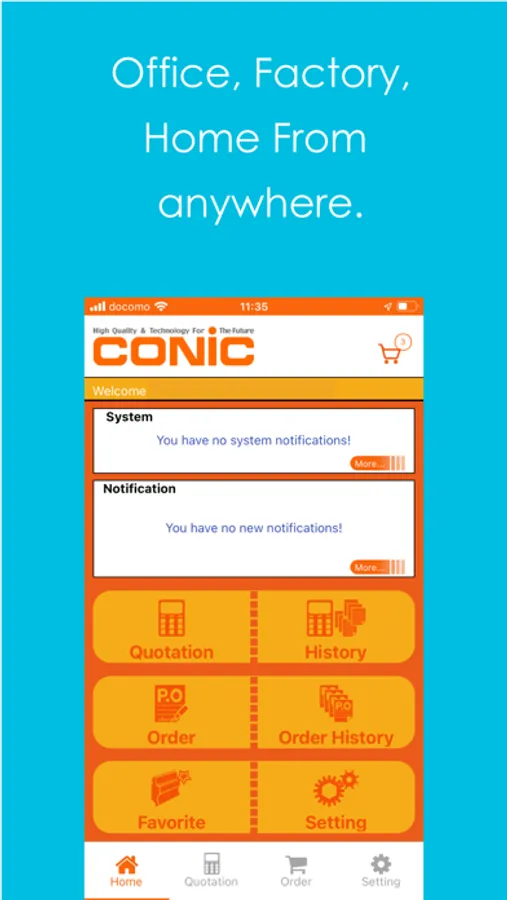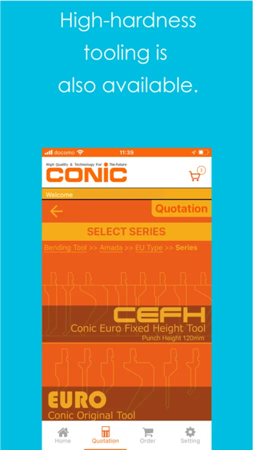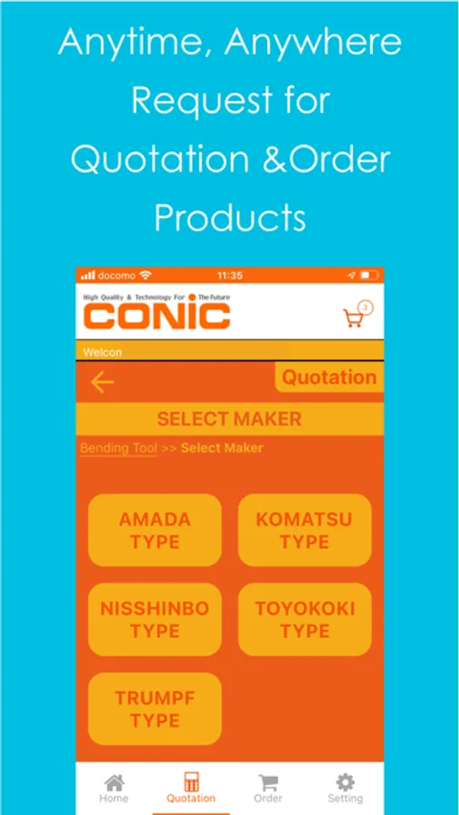 With this app, you can quote and order CONIC products any time 24 hours a day.