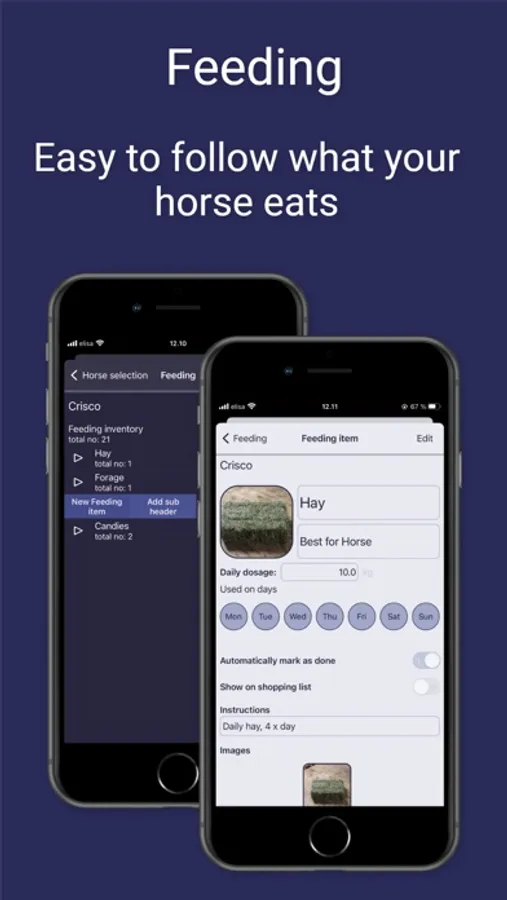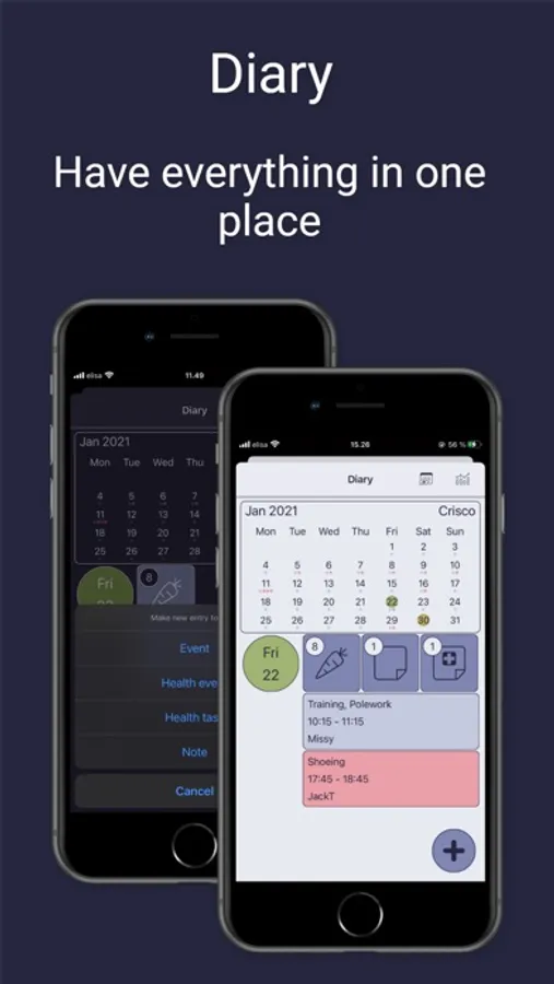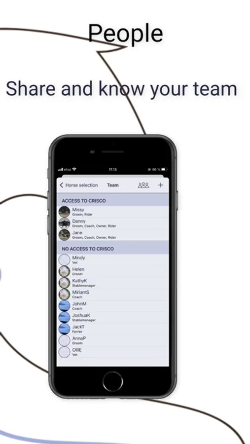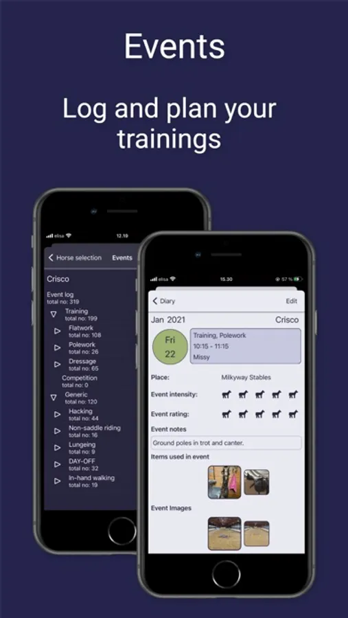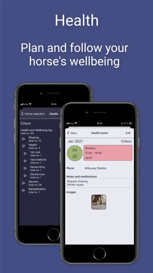 Equine iQ is made for horse owners by horse owners and from the basic need to look after our valued equine companions. In Equine iQ you can keep your horse’s Training Diary and see training Trends, have Sticky notes for daily reminders, set up Health tasks, add Health and wellbeing events as well as log vet and farrier visits. In Feeding section you can plan your horse’s daily feeding instructions and follow up on how the horse has been fed. You can manage feeding groups according to your needs. You can also add products to Shopping list. In Tackroom have all your tack sorted and inventoried in one place as you like, mark items needing care, know if you have surplus of items which you can sell or recycle. See all your training events and trainings in Activity log. Health section combines all your horse’s health events and records to a log – easy to plan and follow your horse’s wellbeing. The team around your horse is important – you can share your horses individually to different team members – in People section you see who has access to your horse. You can choose to whom you want to share your horse data – the co-rider, the groom, the stable manager, your trainer, vet or farrier. All team members who have the horse shared have access to and can add and modify horse information – all information is at your use when you need it. In Places you can keep track where you have been with your horse.