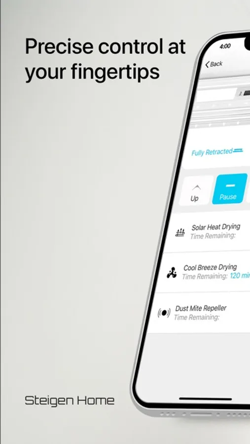 • Control multiple Steigen functions remotely (Solar Heat Drying, Dust Mite Repeller, lighting and more!)