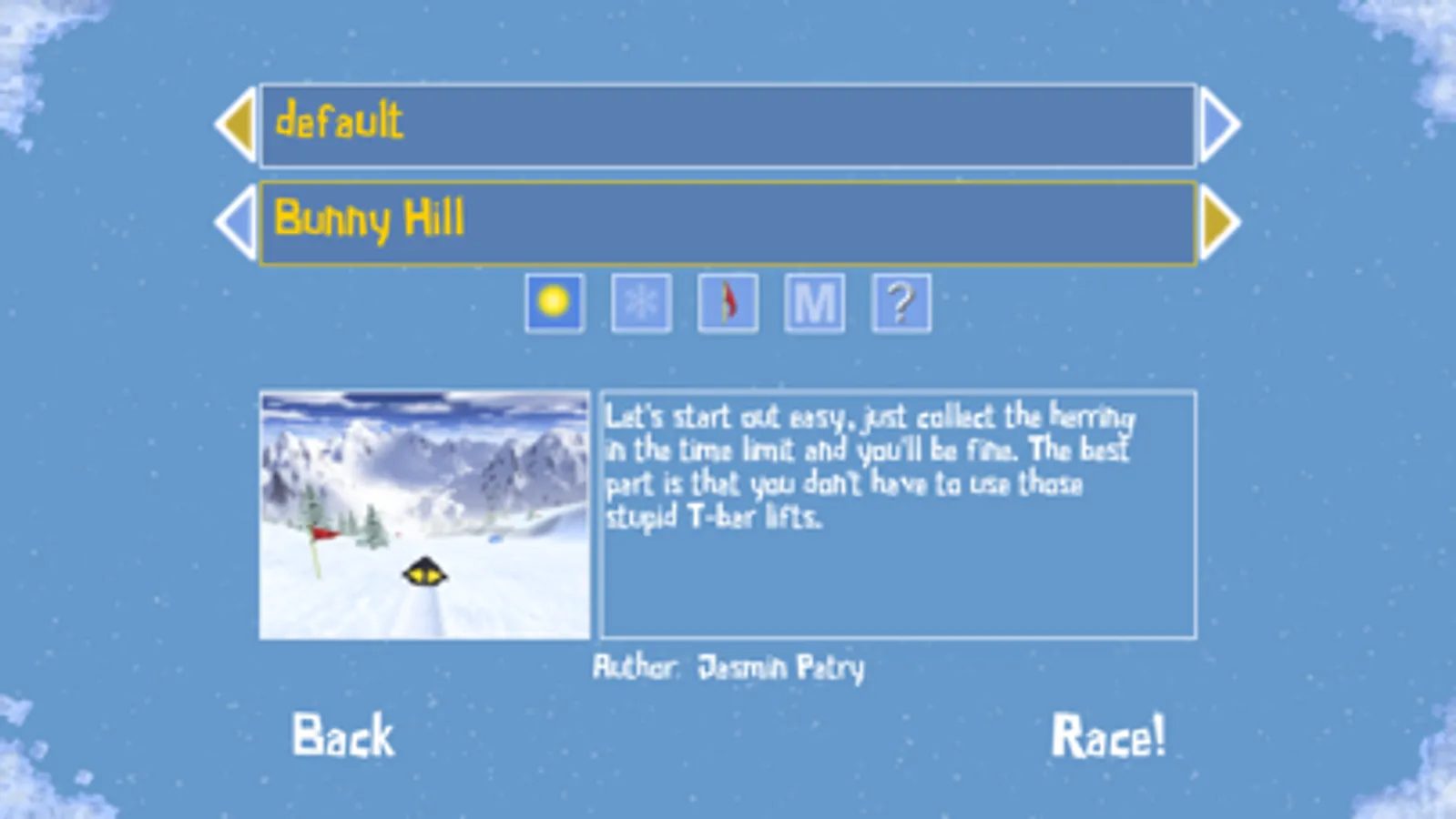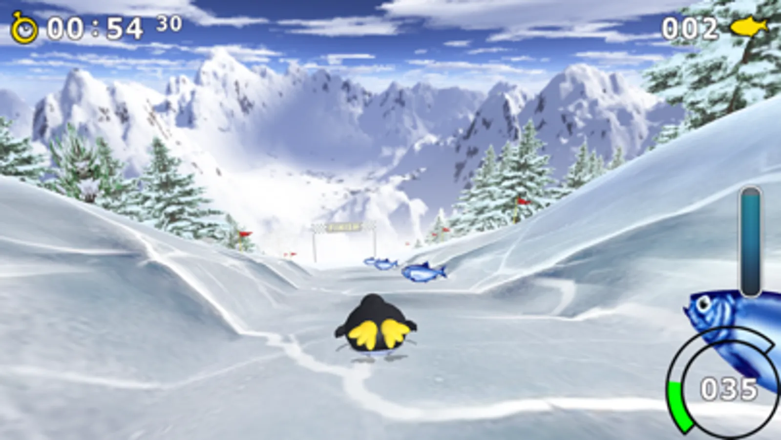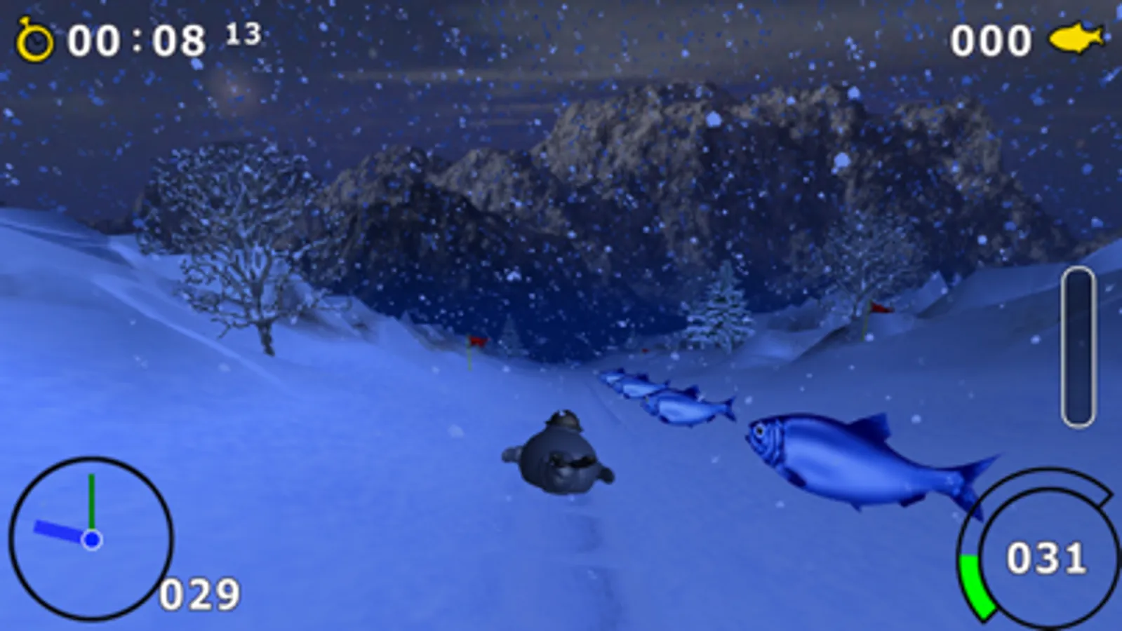 Help penguin Tux to ride down the snow slope, collect as much fishes as you can.
