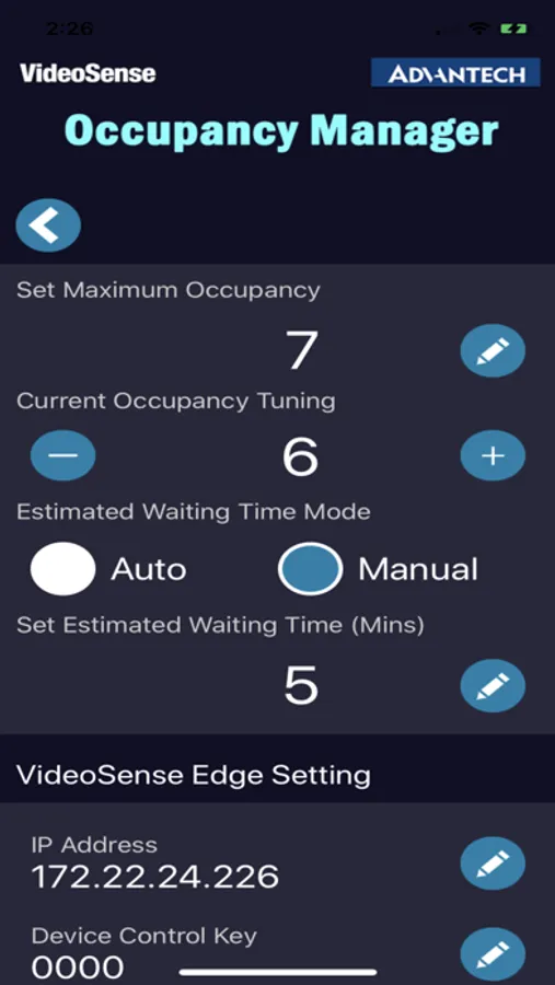 This application provide an easy-to-use interface allow you to view the current occupancy number and the daily occupancy summary. Moreover, the application also allow you to set maximum occupancy number and estimated waiting time.