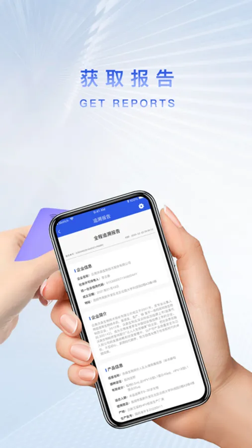 bandVecKh是一款通过扫描二维码或通过NFC通讯技术识别标签,获取标签信息,最终呈现给客户一份含企业信息、产品信息、产品说明、温度位置信息的追溯报告软件。