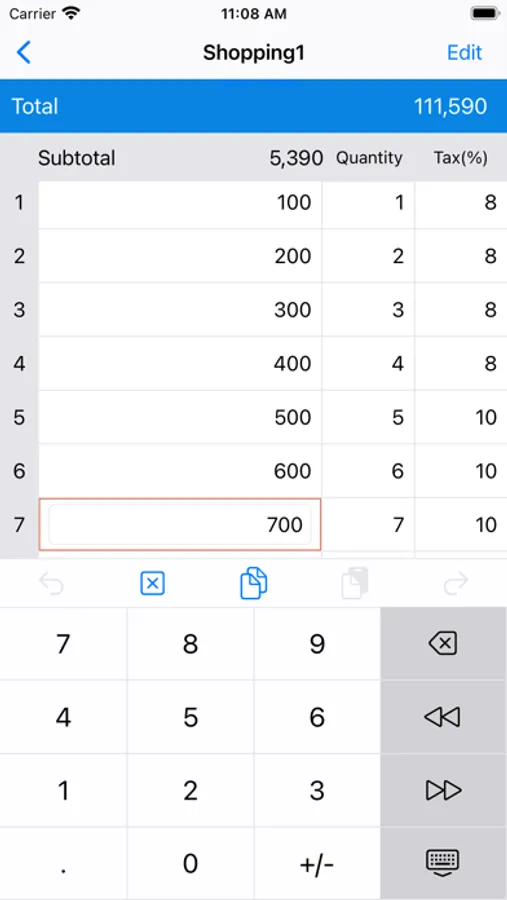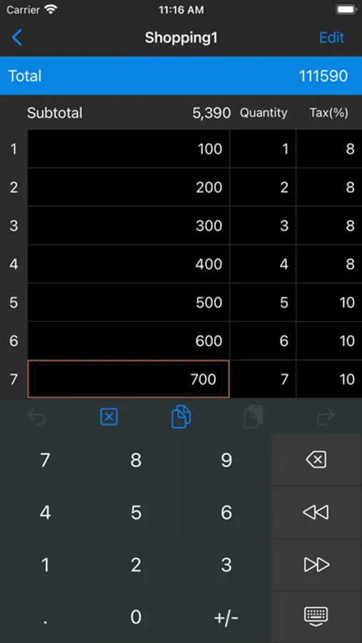 [Shopping] -- Enter quantity and consumption tax for each value too and calculate