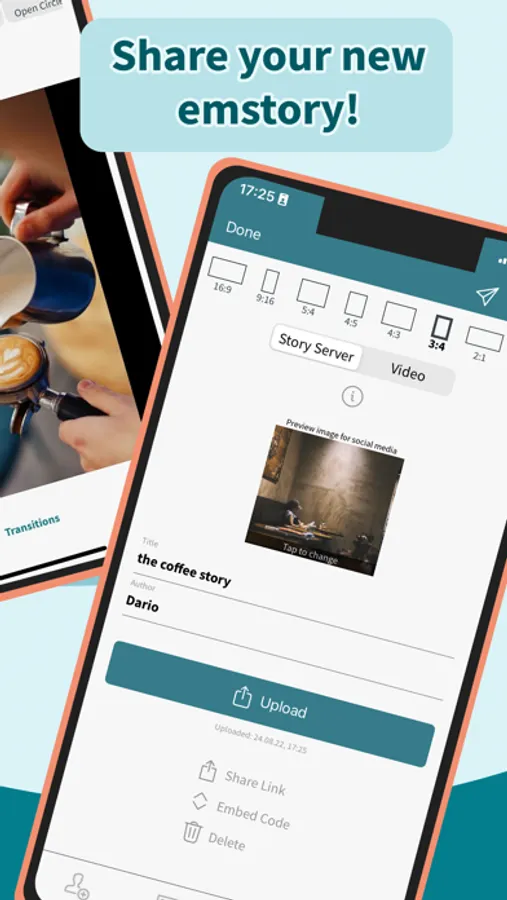 5. Export your emstory videos for sharing, or upload directly to the StoryServer for easy sharing!