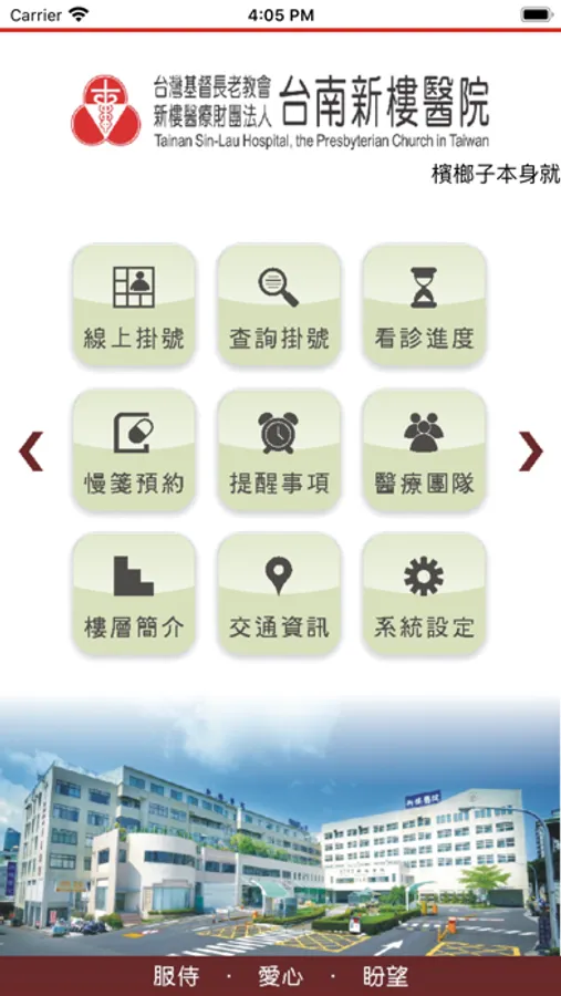 讓您隨時隨地一手掌握就診資訊,包括看診進度、看診提醒、行動掛號、門診表、衛教新知、最新消息、醫療團隊介紹、交通資訊、電話快撥等服務,歡迎民眾踴躍下載使用。