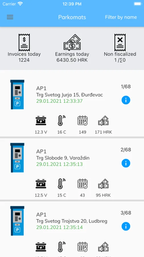 Application for parking device concessionaires in Croatia. The application provides information about all parking machines (last ticket, information about the device ...). Data are collected via a TDC-E device developed by Mobilisis d.o.o. TDC-E is a professional industrial IoT Gateway that connects sensors, machines and the IoT platform to collect and process local sensor and process data.