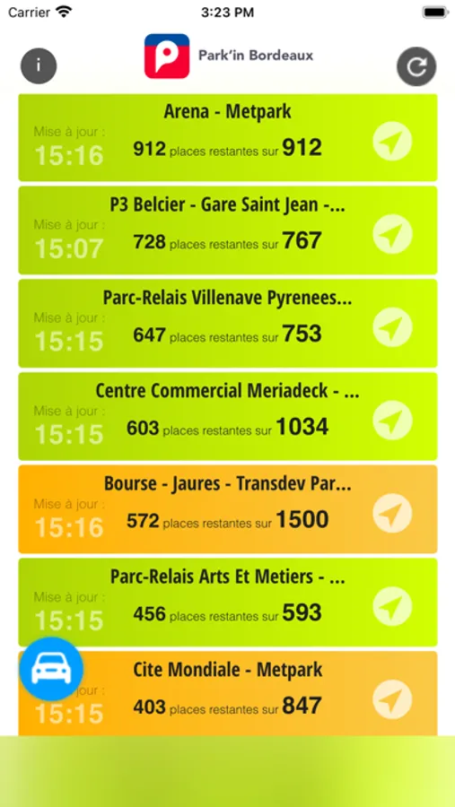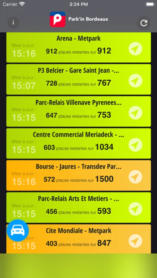 En quelques secondes vous visualisez* les disponibilités des parkings de Bordeaux sur votre iPhone :