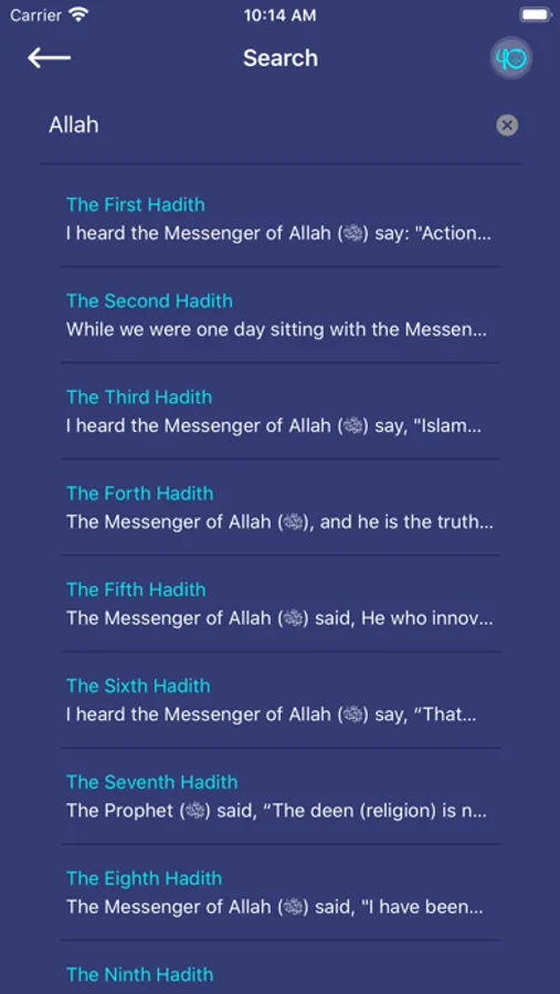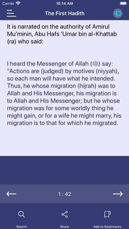 Modern and simple mobile application that shows the Nawawi Forty Hadith compilation in a clear and easy to use interface. The application does not require internet connectivity. The application allows the user to add a hadith to his/her favorites as well as copy hadith content and share it on various social media tools.