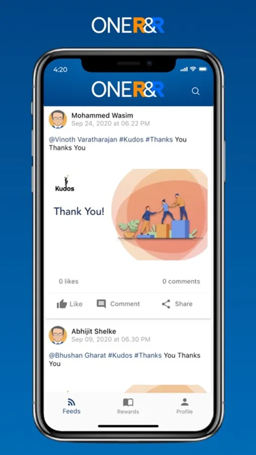 Instantly appreciate your team/colleague for a job well done on the new social recognition platform! Now you can use the R&R app to send virtual Kudos to your team or colleagues. The Kudos get posted on the social recognition platform of the app and everyone can like, share & comment on the post. You can also visit the wall of your colleagues to see all their Kudos posts!