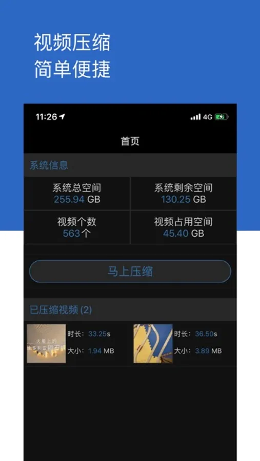 3. Want to see which video takes up more space? Enter compression mode, the space occupied by the video is clear at a glance...