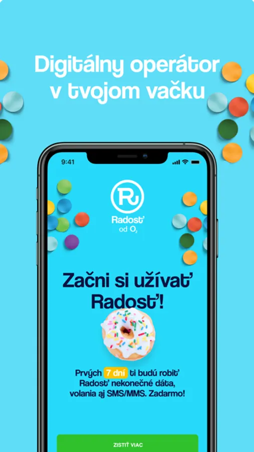 Radosť je digitálny operátor, ktorý sa celý zmestí do appky. Je super výhodný, bez viazanosti a “prvých sedem dní máš úplne zadarmo“.