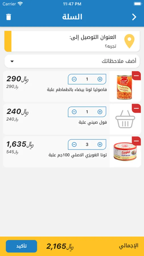 تصفح المنتجات عبر التطبيق واختار الكمية المناسبة واطلب توصيلها إلى البيت.
