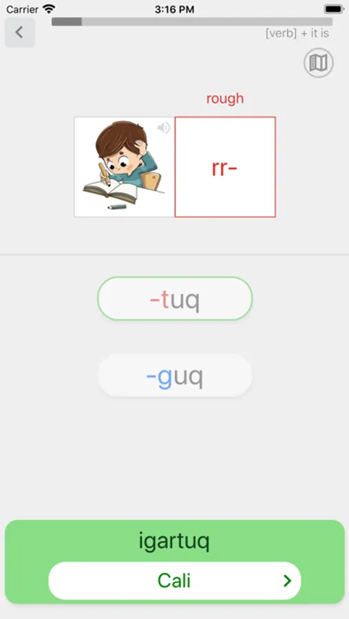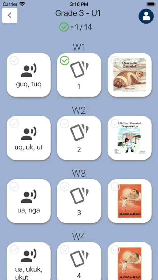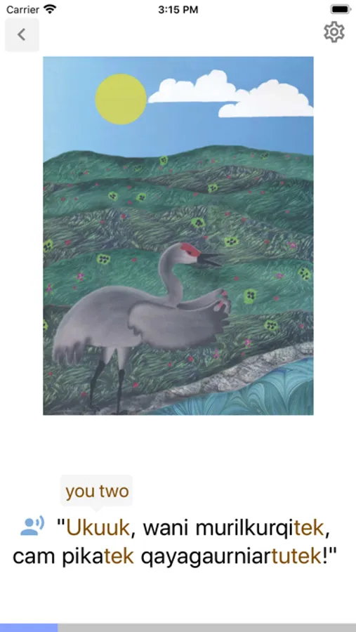 With this app you also have full access to Yugtun language exercises at the third and fourth grade level. These lessons reflect the dual language curriculum of LKSD and include Yugtun grammar endings, swipe-able flash cards, and reading comprehension questions. This application is intended for students in immersion schools or for people wanting to improve their Yugtun at home.