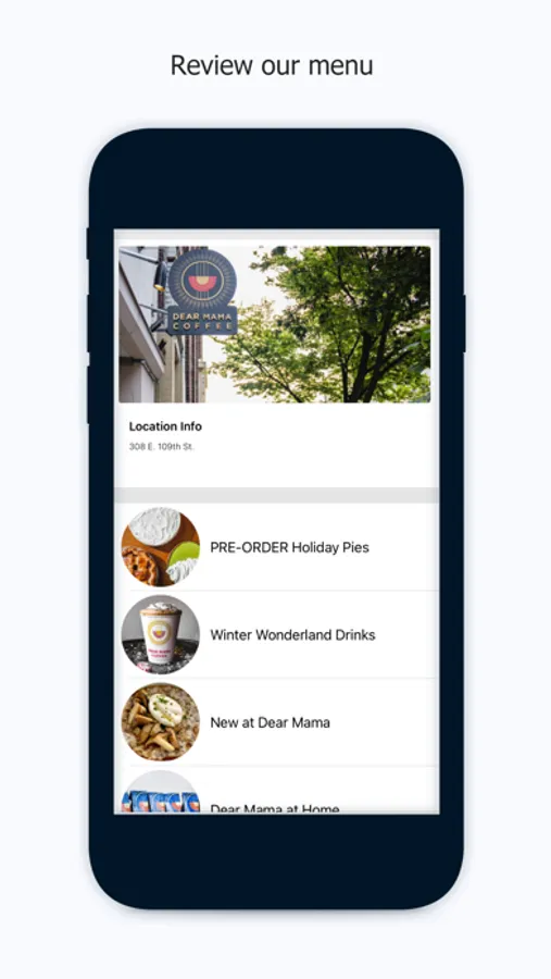 Now you can order our famous Chocolate Chip Cookies, an Iced Latte and more with the click of a button. Use the official Dear Mama app to order ahead for pick up or delivery.