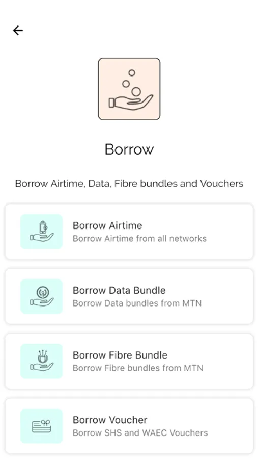 iBorrow is an app that allows you to buy airtime from all mobile networks in Ghana. For every GHS 100 worth of purchases on the app, you earn 1 point. Every point earned can be used as collateral to borrow airtime from any network. Points earned from one network can be used to borrow airtime on another network. When you subscribe to iBorrow and borrow airtime on credit, airtime is deducted from your mobile account at GHS 0.50 daily till the borrowed airtime is repaid. There is no interest charged on the airtime borrowed.