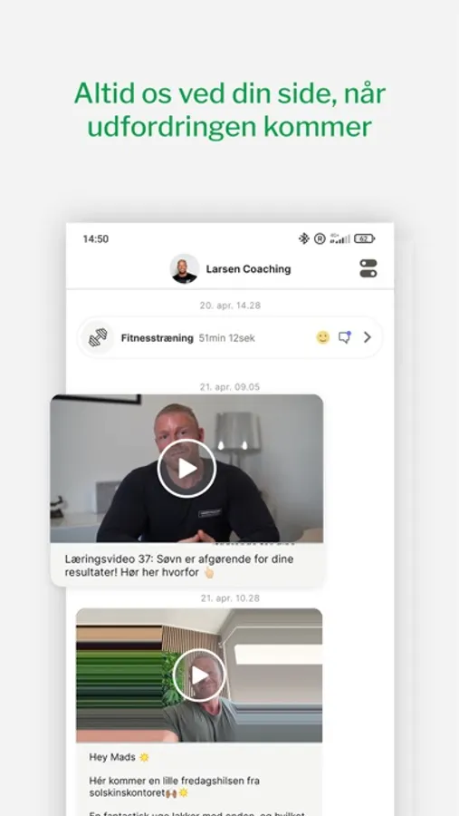De vigtigste funktioner, du får i Larsen Coaching app'en: