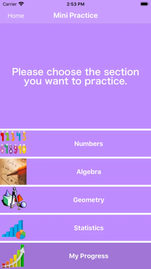 Mini practice lets you choose math areas you want to practice and offers a detailed explanation for each answer you miss.