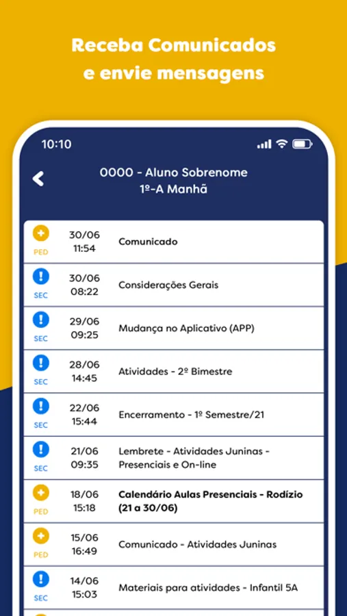 - Envio e recebimento de mensagens entre pais, responsáveis e o Colégio com notificação.