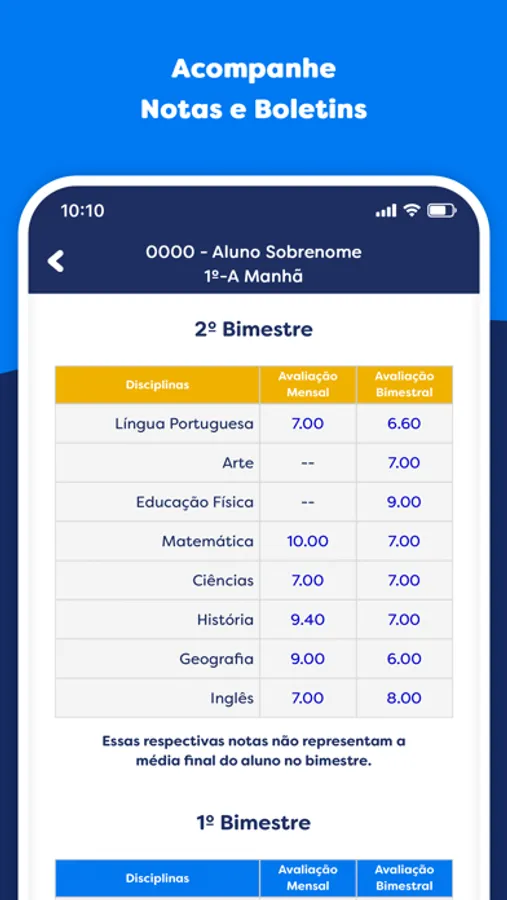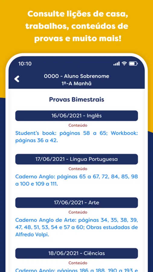 - Possibilita consulta de ocorrências diárias, horários de aula, notas e boletins, lição de casa e trabalhos, calendário de provas, etc.