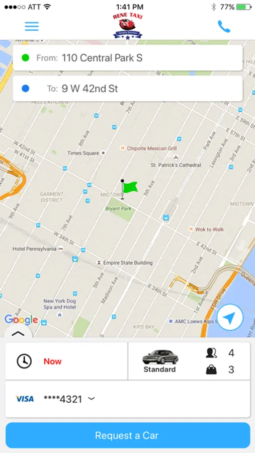 Mobile App to book and manage Rene Taxi Car Service reservations.