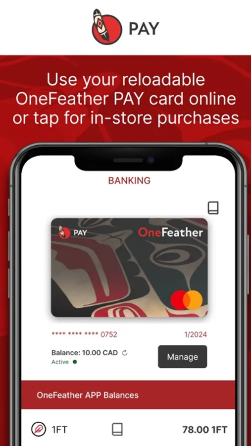 Connecting you to dedicated Indigenous banking with OneFeather APP & OneFeather PAY card. Designed to lift up First Nations in Canada, OneFeather APP provides easy access to digital banking, rewards, a reloadable MasterCard, account balances, money transfers, and other OneFeather services all in one convenient app. Join OneFeather in redefining the Indigenous experience through tradition and innovation.