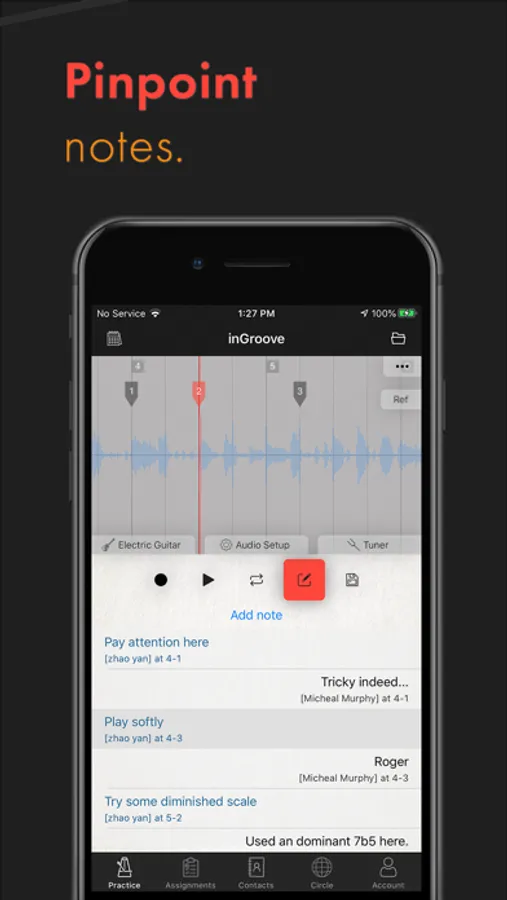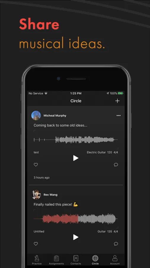• inGroove doesn’t only connect you to your teacher, but also all of your fellow musicians. Share your recordings with them, and listen to theirs.
