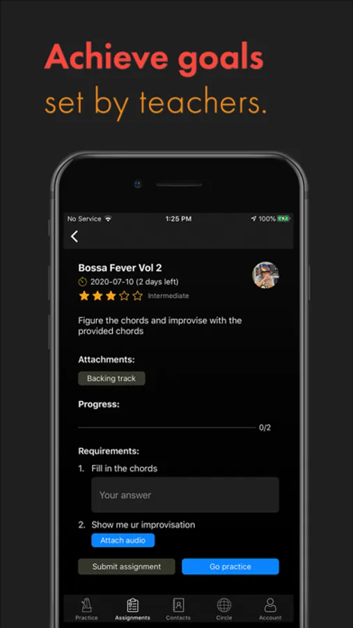 • Assignments contain everything you need for practice, a score, a reference track, and a backing track can be attached to an assignment.