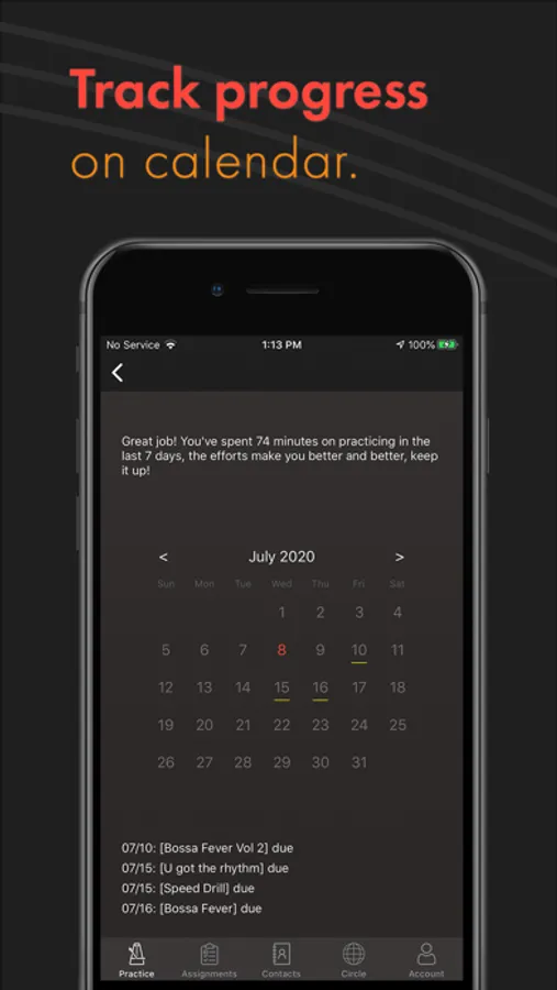 •Smart calendar which generates daily dairy and weekly summary based on your practice, keeps you organized and motivated.