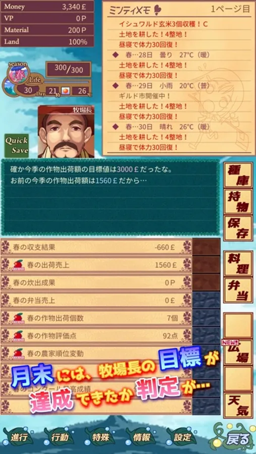 今作は、農場経営!新キャラクター「ミンティ」となって、季節に応じた作物を育てて、目指せ、No.1農家!