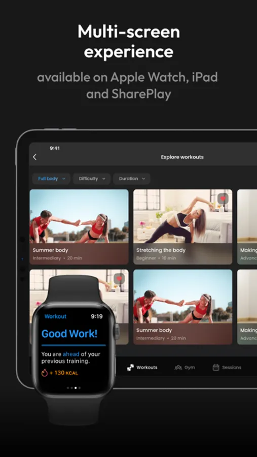Feeling like training on a big screen? Video call with your coach, your friends and family using SharePlay and work out with them.
