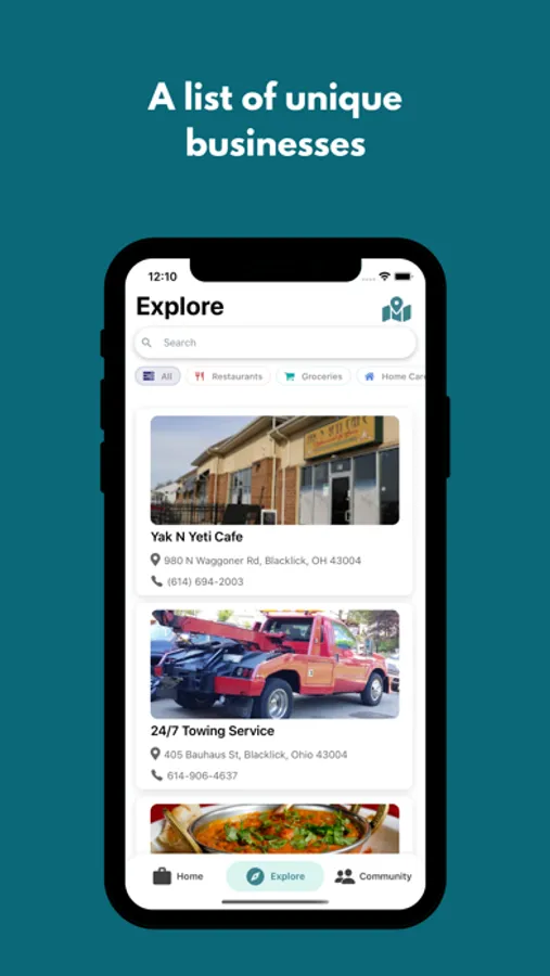 restaurants, grocery stores, home cares, home businesses, gas stations, parlors, services etc.