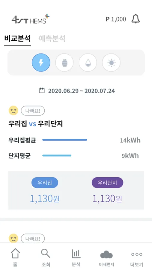 AI 및 빅데이터를 기반으로 우리집 에너지 사용량을 조회하고, 분석함으로써 효율적으로 관리할 수 있습니다.