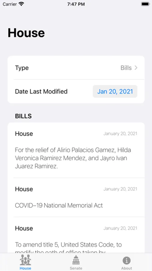 A tool to browse all the latest bills and resolutions that go through the U.S Congress