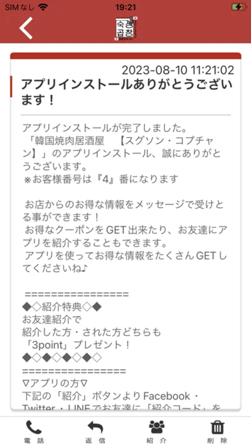 スグソン・コプチャンのアプリをSNSを通じてお友達に紹介する事ができます。