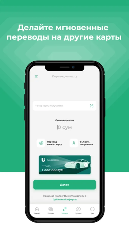 Совершайте быстрые ПЕРЕВОДЫ НА КАРТЫ всех банков Узбекистана. Всего пара тапов и ваш перевод успешно выполнен, с самой низкой комиссией - 0,5%.