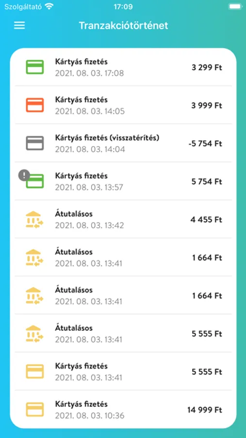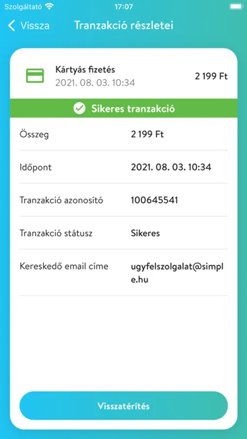 - Átlátható: az alkalmazáson belül nyomon követhetőek a tranzakciók, így az összeg visszatérítése közvetlenül a tranzakcióra kattintva elindítható, a sikertelen tranzakciók esetében pedig feltüntetjük az elutasítás okát