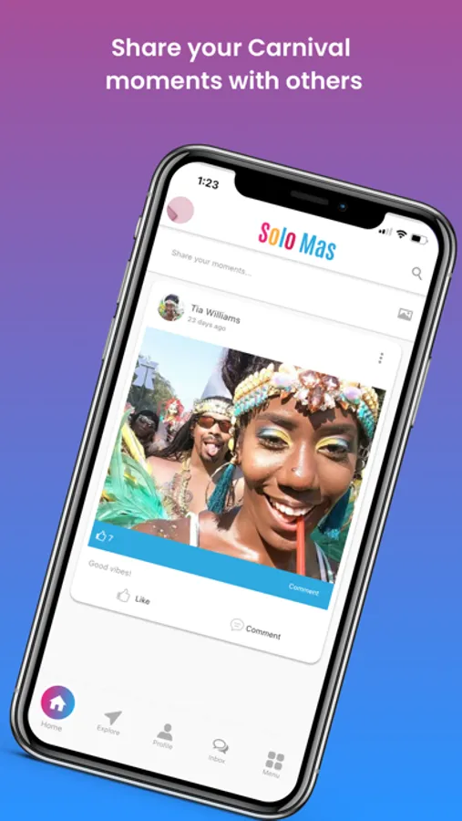 The Solo Mas App is a social travel app which connects its users with Carnival enthusiasts and masqueraders near them. Use our Explore tab to find Carnivals near and far. Join our various groups for advice and recommendations on a Carnival and fetes. Vote in our photo contests for status points or compete in the contests for prizes. By easing the concern of playing mas alone, the Solo Mas app supports a user’s stateside, local, and international Carnival experience.