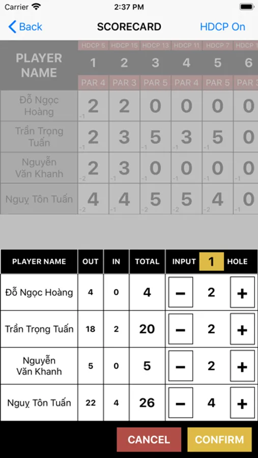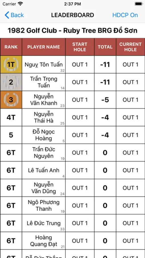 - Real time progress of all teams playing in the same golf course