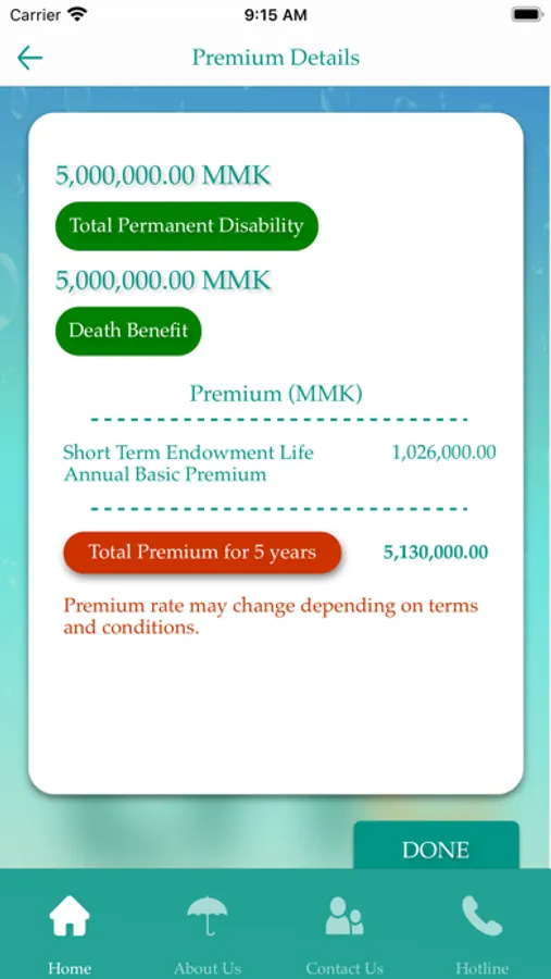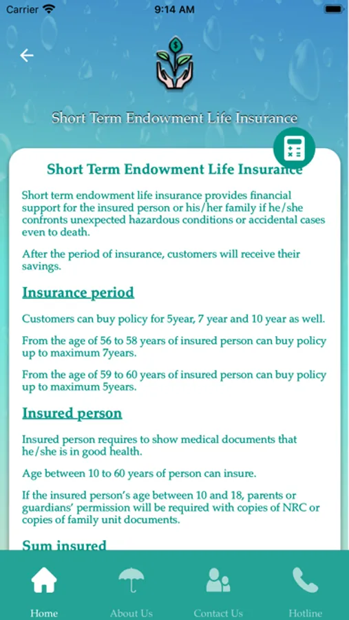 EXCELLENT FORTUNE LIFE Insurance mobile app can find easily and easy to use. That helps you calculate the premium for your insurance policy. Available products are Short Term Endowment Life Insurance,Public Life Insurance,Student Life Insurance,Education Life Insurance,Personal Accident Insurance,Travel Insurance,Group Life Insurance,Health Insurance,Farmer Life Insurance,Snake Bite Life Insurance,Sportsman Insurnce. We will update the application with login system and online payment system in the future.Opening company branches are still in progress.