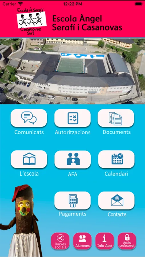 App de l'Escola Àngel Serafí i Casanovas de Sort. L'aplicació permet una comunicació directa entre el centre i els pares dels alumnes. Consta d'una primera plana de registre on s'identifica l'usuari. A continuació apareix un menú amb diverses opcions: comunicats, autoritzacions, documents, secció "L'escola" amb l'accés directe a la web del centre, secció AFA, secció Calendari, secció Pagament i secció Contacte. A la barra inferior hi ha la secció Xarxes Socials, Alumnes, Info App i Accés Professorat.