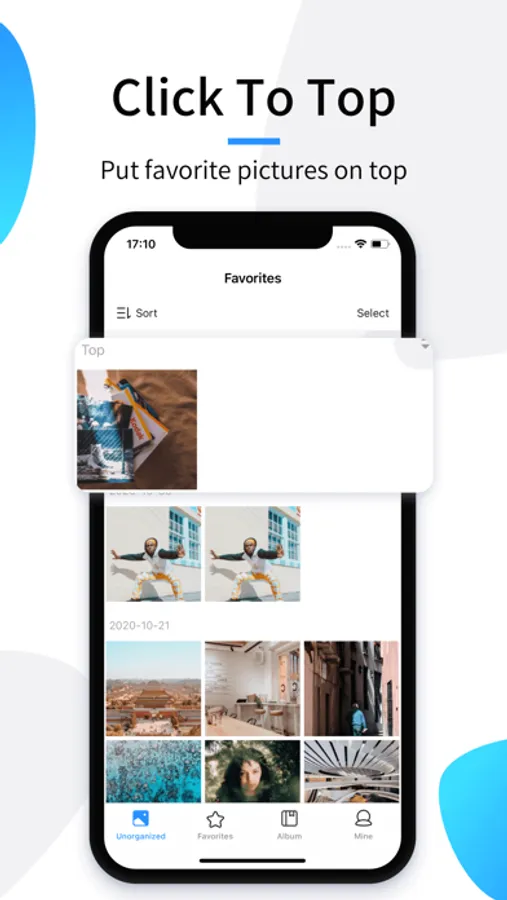 4. Favorites to top: We not only provide you with favorites, but also provide a top function, you can put multiple photos on top of favorites, if you don’t need to continue to top, click Cancel to top