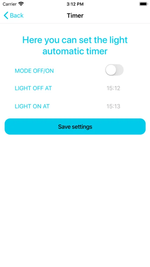 From the app you will set up the timer and decide if the light will be turned off or on.