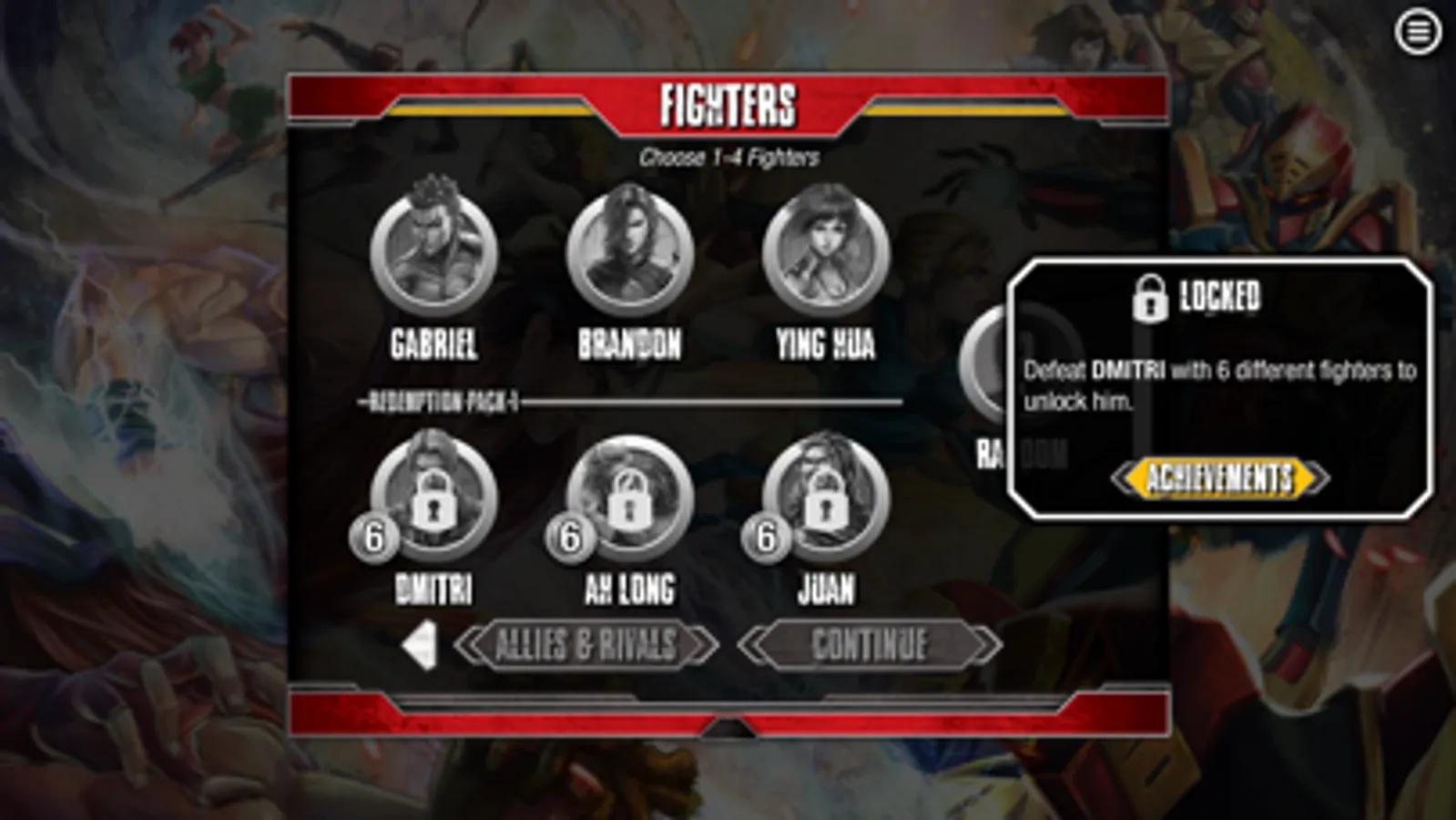 3. Arcade Mode: choose your fighters, allies, rivals, enemy and stage to play