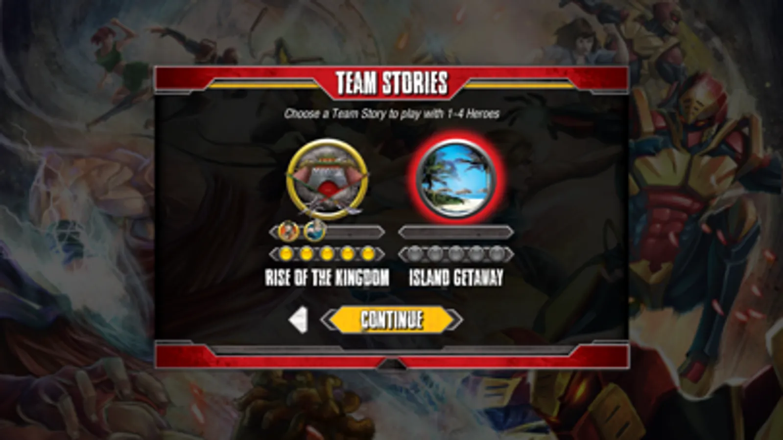 2. Story Mode: play through each fighter's Hero Story, customizing their decks, and then combine 1-4 of those heroes to take on Team Stories