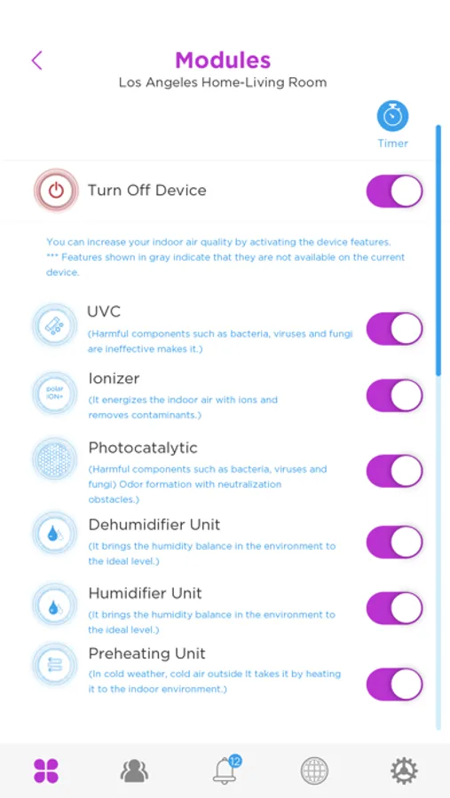 Numerous number of scenario setups that have different ideal air conditions such as living room, bedroom, kitchen, baby room.