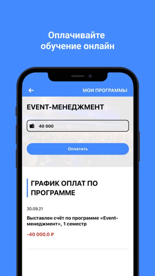 В учебном плане есть раздел оплаты и график индивидуальных платежей. Благодаря этому графику образовательный портал автоматически напоминает о платежах. Укажите сумму, которую хотите внести, и реквизиты карты — дело 10-ти секунд.